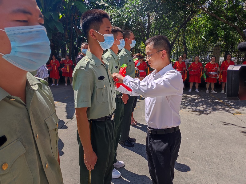 9月9日下午,大英县举行2021年退役军人光荣返乡集中欢迎仪式,副县长周明出席仪式并致辞。大英县退役军人事务局党组书记、局长徐其柱,党组成员、副局长钱礼华,各镇(街道)退役军人服务站站长,2021年秋季退役军人代表参加仪式。