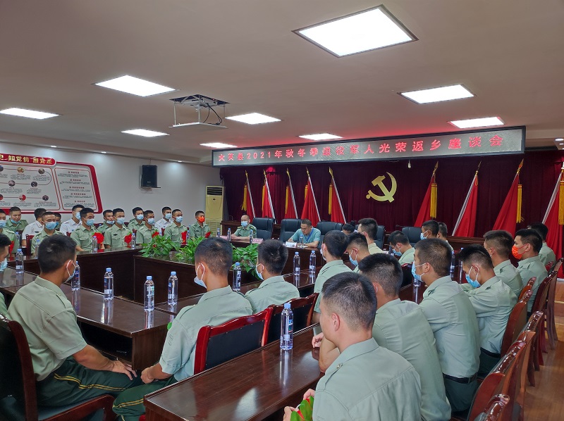 欢迎仪式结束后召开了座谈会,会上徐其柱向返乡退役军人介绍了大英经济社会发展情况和退役军人服务保障体系建设工作开展情况;相关部门同志向退役军人介绍了退役返乡后的社保关系转接、党员组织关系转接、退役信息采集和抚恤关系转接等工作流程。