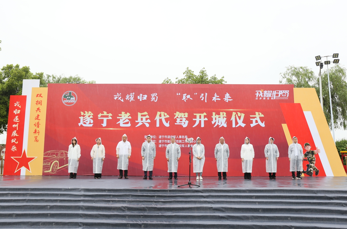 4月29日,以“戎归遂州展风采 双拥共建谱新篇”为主题的遂宁老兵代驾开城仪式在船山区犀牛广场(双拥文化广场)举行。100余名船山区及市直园区退役军人代表、50名“老兵代驾”平台代表齐聚现场,共同见证退役军人就业创业创新项目启航。
