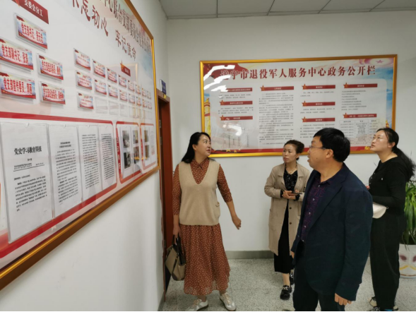 张海娟局长先后一行参观了市退役军人局机关、市退役军人服务中心日常运行和后勤保障等情况,考察了船山区退役军人服务中心、退役军人就业创业联盟、犀牛堤社区退役军人服务站规范化建设情况。双方还召开了工作交流座谈会,对退役军人工作基本情况、办公室工作开展情况等进行了交流。