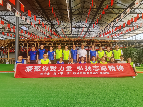拓展训练以增强团队协作精神为重点,组织全体志愿者在遂宁市船山区老池镇茶博园开展了志愿服务模拟训练,进一步提升了志愿服务的能力和水平。
