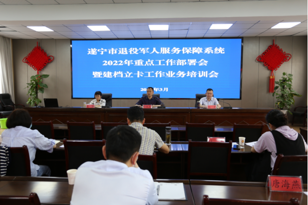 为开展好全市退役军人服务保障系统建设各项重点工作,进一步推进退役军人、其他优抚对象建档立卡工作,3月16日,遂宁市组织召开全市退役军人服务保障系统2022年重点工作部署会暨建档立卡工作业务培训会。市退役军人局党组成员、市退役军人服务中心主任舒天忠出席会议并讲话。