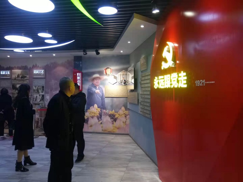 军休老干部同全国模范退役军人蒋乙嘉同志座谈,参观了拱市联村乡村振兴产业基地、党建文化走廊、电商运营体验店和村史馆村史资料、图片展览。