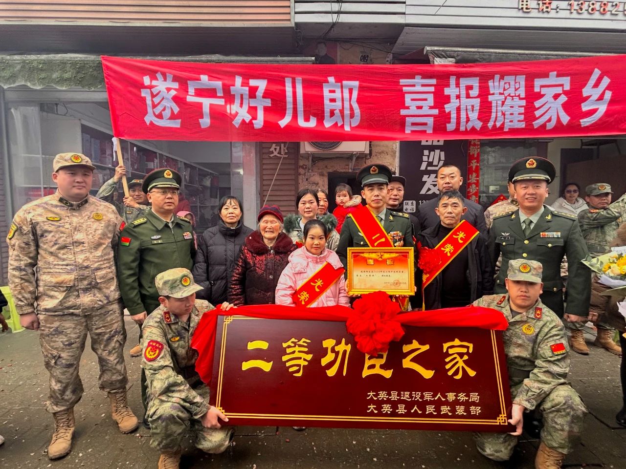 喜报传乡梓,荣耀满故乡。2月7日,县人武部、县退役军人事务局、回马镇共同为荣立二等功现役军人钱伟家庭送去喜报“二等功臣之家”牌匾,用满满的仪式感彰显尊崇与荣光。2月13日,县退役军人事务局、回马镇组成喜报团,为在2024年度工作中成绩突出,荣立三等功现役军人郭刚家庭送去喜报和慰问金,营造拥军优属的良好氛围。两次“送功”仪式不仅彰显了对现役军人及其家庭的崇高敬意与深切关怀,更在回马的土地上播撒下崇尚英雄、热爱国防的种子,激励着更多热血青年以实际行动报效祖国,为家乡书写更多的辉煌与荣耀。