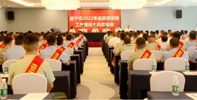 遂宁市举行“退役不褪色,永远跟党走,喜迎党的二十大”为主题的2022年度由政府安排工作退役士兵欢迎会,欢迎“最可爱的人”回家,鼓励他们始终发扬军人本色,为遂宁经济和社会发展再立新功。