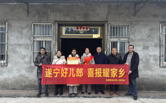 锣鼓声声,喜庆洋洋,3月4日,遂宁经开区退役军人服务中心工作人员、北固镇武装部部长、退役军人服务站工作人员及村干部一行,先后来到现役军人王文腾、孟礼家中,为王文腾的家属送上“战备训练三等功”喜报,为孟礼的家属送上“个人平时三等功”喜报,在送上奖励金的同时致以热烈的祝贺与亲切的慰问。