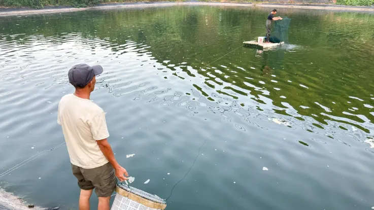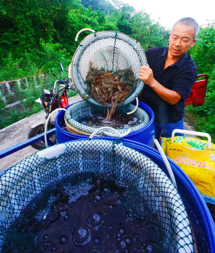 南美白对虾经过淡化试养成功后,在国内不少地方掀起养殖热潮。在射洪洋溪镇铜鼓山村,退役军人陈礼龙就加入了这个行列,将本该养殖在海水中的南美白对虾带到了射洪,用涪江水养殖并形成了年产值上百万的海虾淡养新兴产业。 起网、装筐、称重、打包……近日,铜鼓山村的多尔水产养殖场已是一片热闹。工人们铆足劲打捞,客商的运输车一辆接一辆驶入,刚捕捞上岸的南美白对虾很快便被抢购一空。看着这番好“丰”景,多尔水产养殖场负责人陈礼龙的喜悦之情难以掩藏。▲客商将一筐筐鲜活的南美白对虾装运上车。南美白对虾,原产于南美洲太平洋沿岸海域,壳薄体肥、肉质鲜美、营养丰富,是人们喜爱的美食,也是当今世界养殖产量最大的三大虾类之一。记者在养殖基地看到,基地内20个宽敞的养殖塘连成一片,工人们有条不紊地回收虾笼,只见南美白对虾个个体形饱满、活蹦乱跳。站在塘边等候提货的客商说,“这里养殖的南美白对虾有着鲜香的口感,虾肉白皙、肉质好,在市场上很受欢迎。”▲工人开塘捕捞南美白对虾上岸。然而,这样的“丰”景背后,创业之路曾充满坎坷。 “养虾必先养水。”陈礼龙说,2015年7月,在家人的支持下,他创办了四川多尔水产科技有限公司,开始尝试在淡水环境下生态养殖罗氏虾、南美白对虾。在经过了无数次失败,一次次总结、一次次重来后,最终成功探索出多种试养模式,比选出适合涪江水系的生态养殖方法,帮助罗氏虾、南美白对虾“扎下了根”。只有生态养殖、科学发展才能迎来“钱”景。目前,陈礼龙养殖罗氏虾、南美白对虾的技术逐渐成熟,在省水产学校、射洪市农业农村局的帮助指导下,成功申报了15项与水产相关的新型实用专利,并成功注册了“虾司令”商标。同时,他牵头成立射洪市多尔虾业专业技术协会,将淡水生态养殖罗氏虾、南美白对虾推广至全市。 “基地水面面积有100余亩,每年投放虾苗两茬,在7月—10月陆续上市销售,主要是销往射洪、遂宁城区。”陈礼龙信心满满地说,按照目前的养殖规模,以一年产两次进行测算,预计年产值可达180万元。