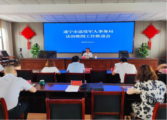 2023年6月6日下午,遂宁市退役军人事务局党组成员、机关党委书记熊红军主持召开“法治账图”工作推进会,机关各科室负责人、直属事业单位负责人参加会议。