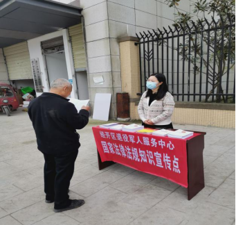 2021年4月15日是我国第六个全民国家安全教育日。为提高我区居民的法律观念和维权意识,在第六个全民国家安全教育日来临之际,经开区退役军人服务中心紧密结合庆祝建党100周年、防范化解重大矛盾风险、营造共筑安全屏障氛围,于4月15日上午,在宏桥安置小区开展法律法规宣传活动,集中向社会公众传播国家安全方面的知识,倡导群众知法、懂法、用法,维护国家安全。此次活动中,工作人员通过发放法律读本及相关物品,大力宣传了《国家安全法》、《国家密码法》与保护退役军人合法权益等密切相关的法律法规。现场共发放普法读本200余本、宣传物品100余份,接受群众咨询24人次。