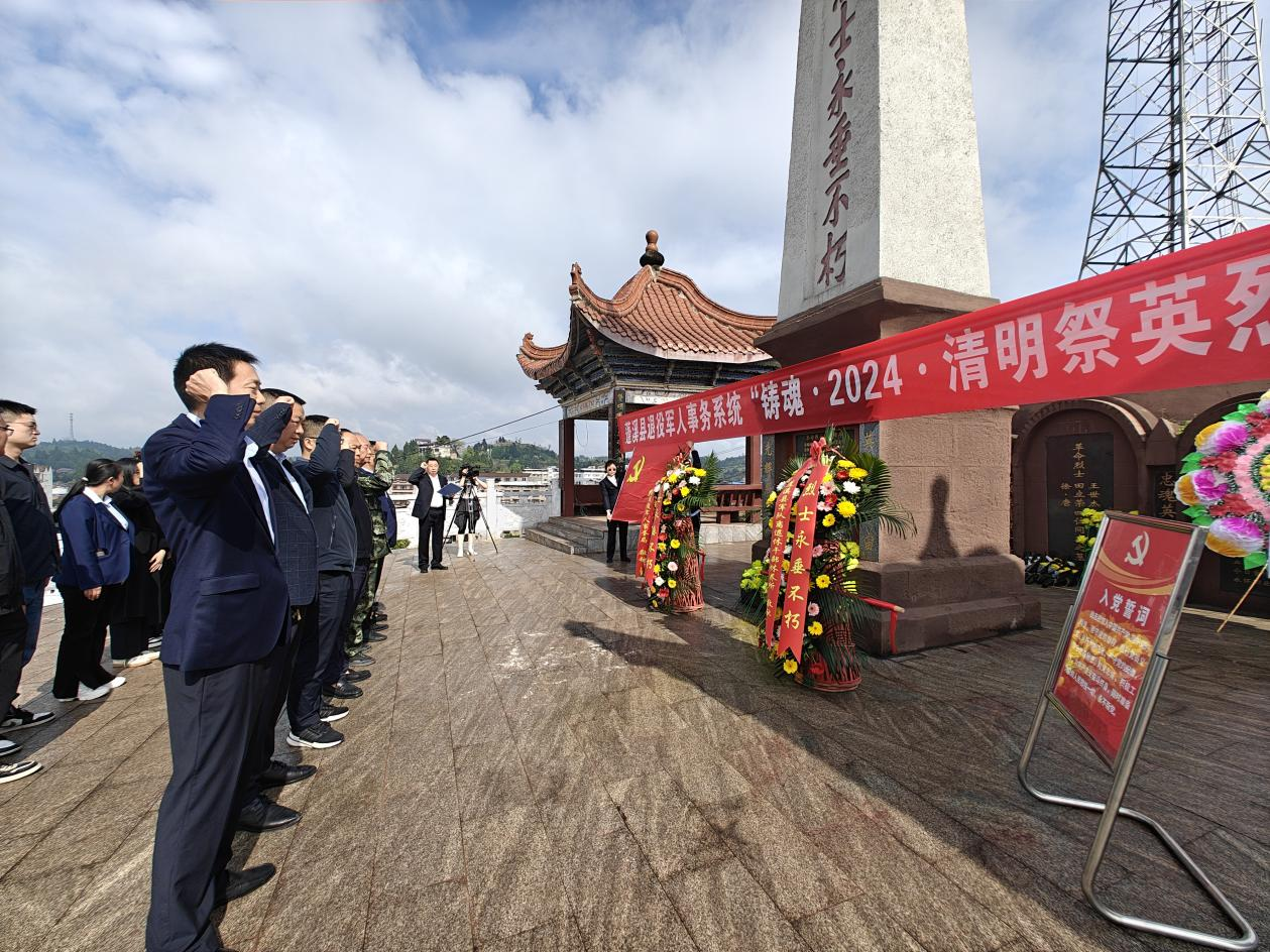 4月2日上午,蓬溪籍退役军人代表和蓬溪县退役军人事务工作者代表在蓬溪县烈士陵园开展“铸魂·2024·清明祭英烈”主题活动。参加活动的全体人员在纪念碑前列队默哀,鞠躬行礼,并向烈士们敬献花篮和鲜花,擦拭烈士墓碑。大家纷纷表示,将继承发扬烈士精神,传承红色基因,赓续红色血脉,立足岗位,广泛宣传英烈事迹,充分发挥党员先锋模范作用,在全社会营造崇尚英雄、学习英雄、关爱英雄的浓厚氛围,汇聚起推进强国建设、民族复兴的强大正能量,努力创造不负革命先辈期望、无愧于历史和民众的新业绩。