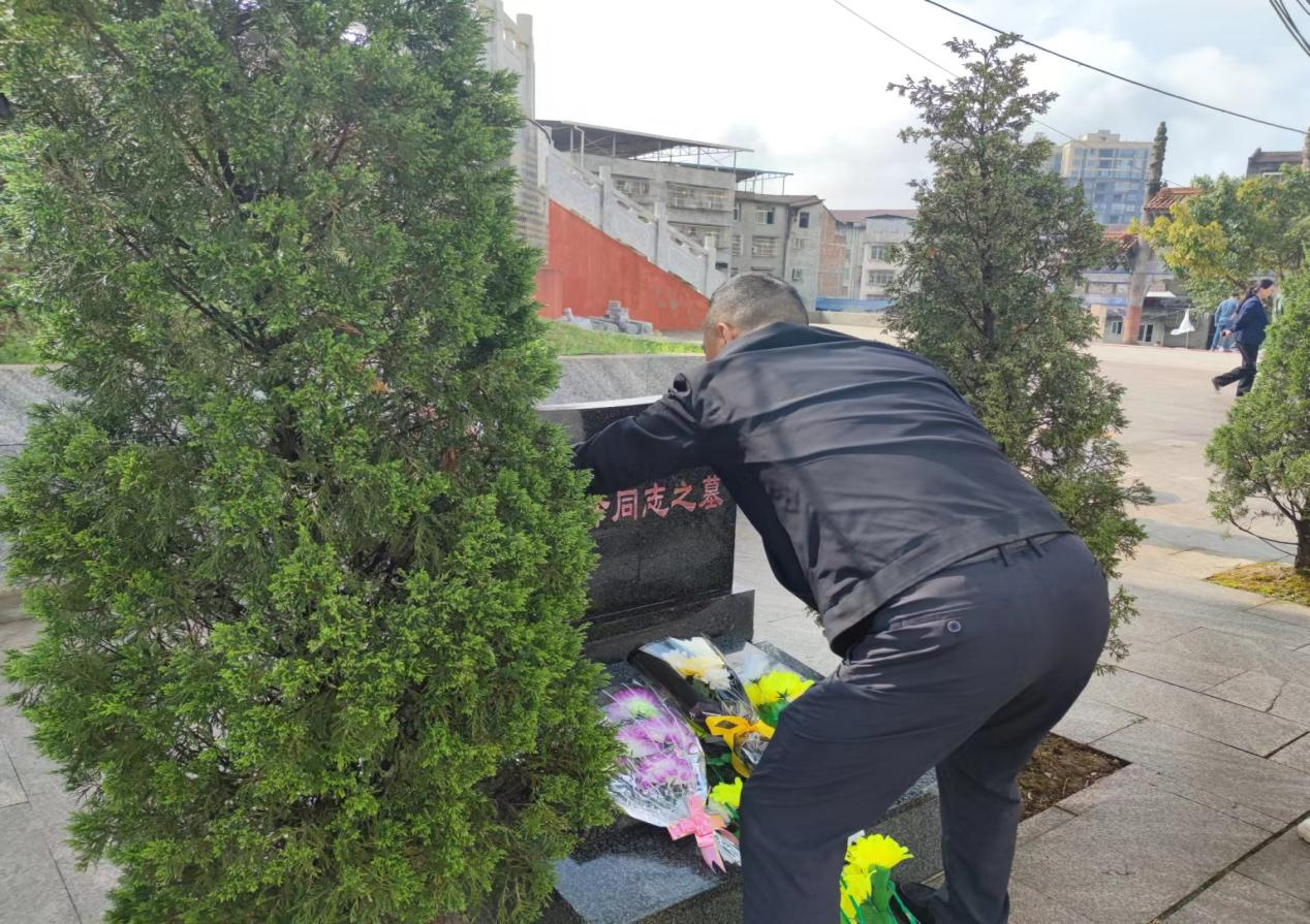 向烈士墓敬献鲜花并擦拭墓碑