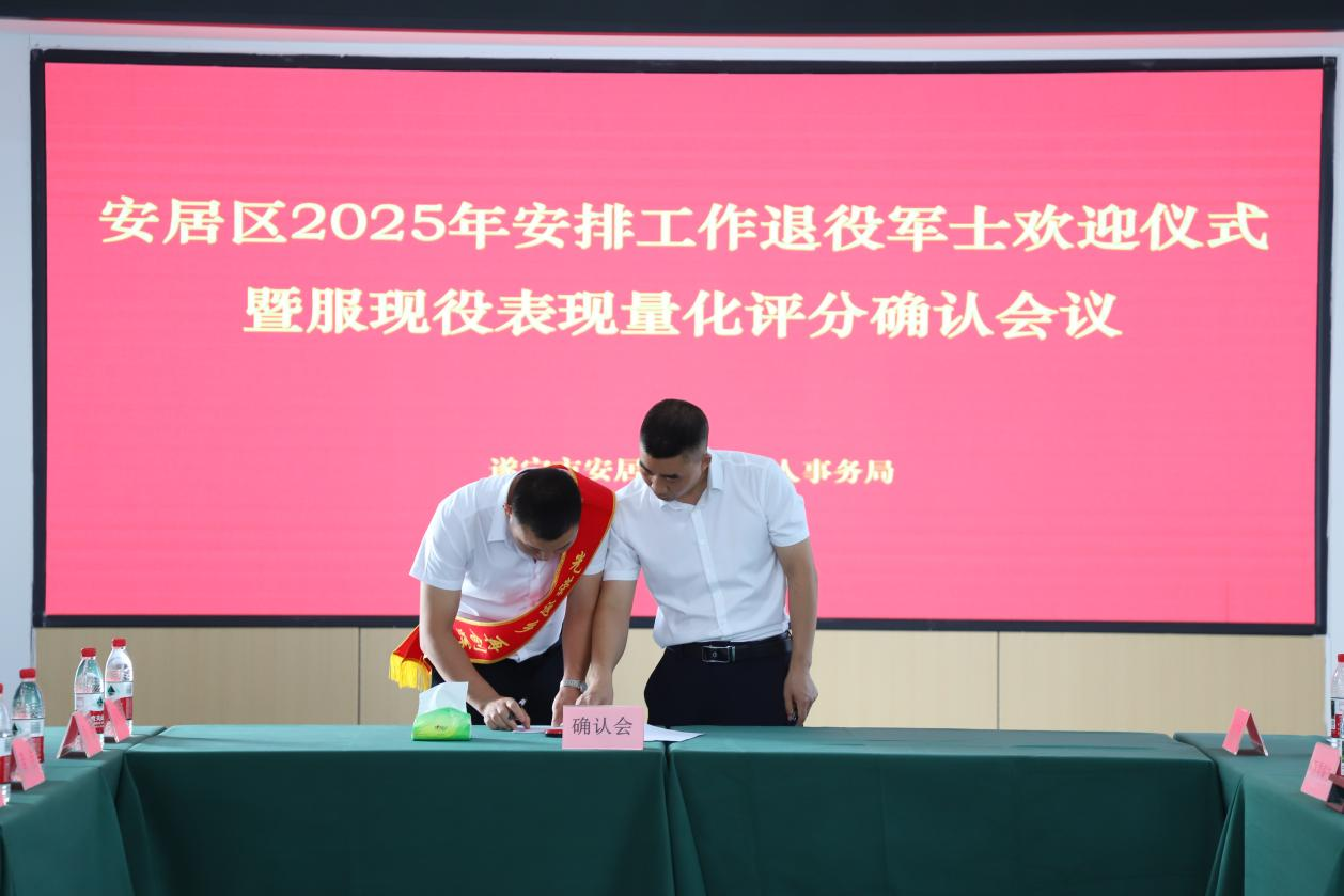 6月17日下午,在安居区退役军人创业孵化中心,17名符合政府安排工作的退役军士齐聚一堂,参加安居区2025年安排工作退役军士欢迎仪式暨服现役表现量化评分确认会议,准备踏上人生新征程。