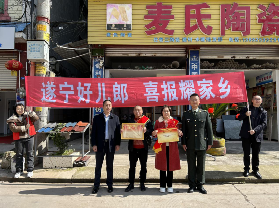 2025年3月3日,象山镇武装部联合退役军人事务局,前往象山镇富乐社区任东家中开展慰问活动,为其送上三等功及“四有”优秀士兵的荣誉喜报。任东现服役于西藏昌都,在部队中,他不畏艰苦,始终坚守岗位,凭借出色的军事素养和顽强的拼搏精神,圆满完成各项艰巨任务,荣立三等功并获评“四有”优秀士兵。