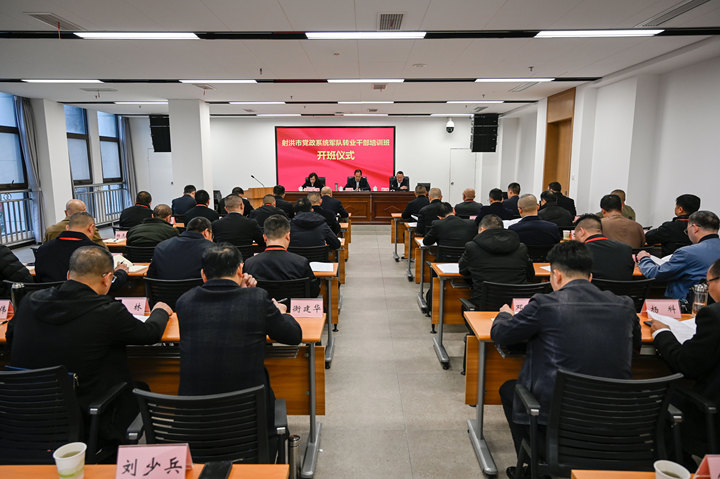 11月18日,射洪市党政系统军队转业干部培训班在市委党校正式开班,全市近50名历年来安置在党政系统的军队转业干部将开展为期一周的集中学习。遂宁市退役军人事务局党组成员、副局长李刚,射洪市委常委、政法委书记文加武出席开班仪式。