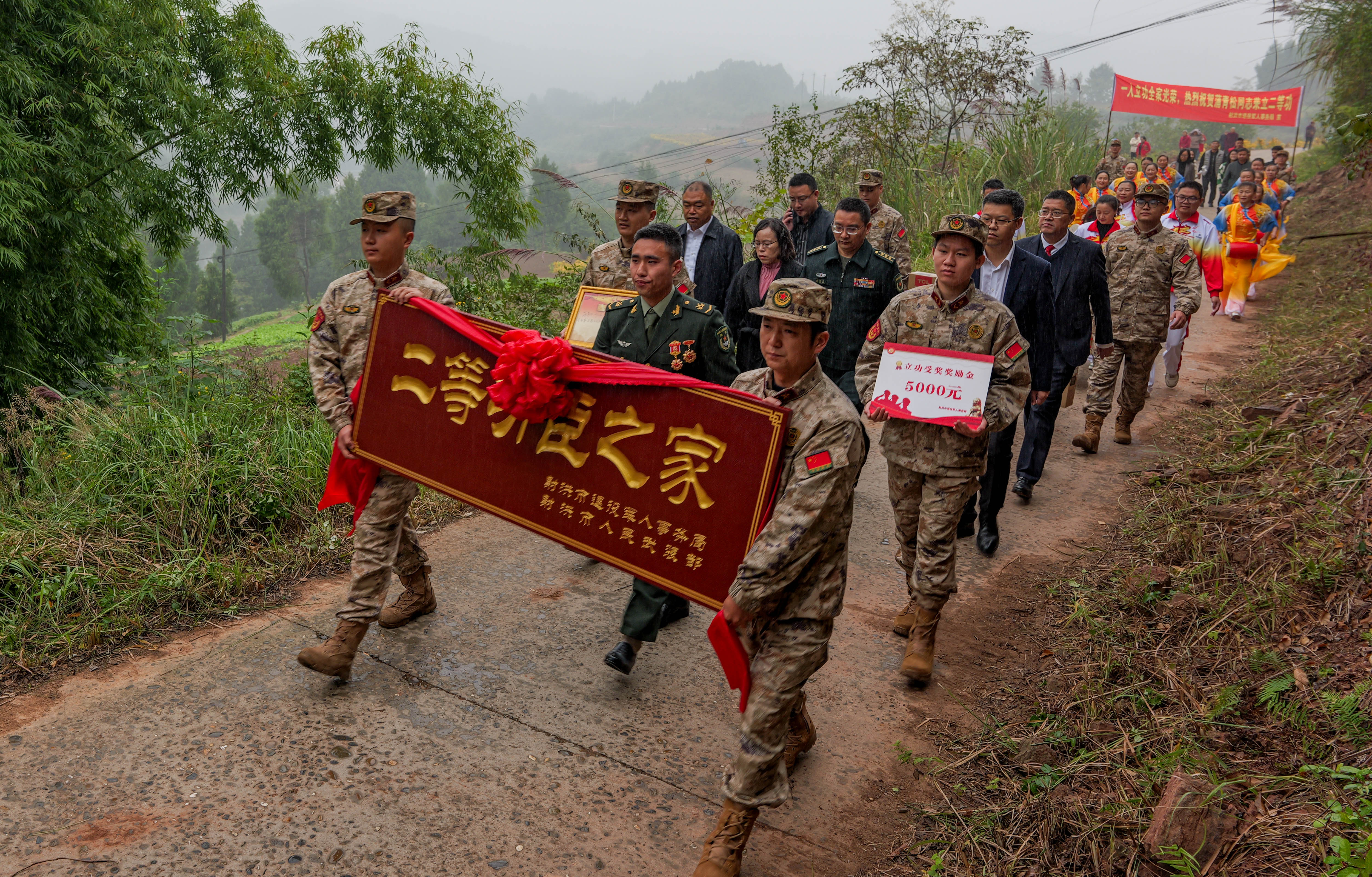 为弘扬拥军优属光荣传统,深入推进新一届全国双拥模范城创建工作,增强广大官兵爱军精武的光荣感、自豪感、使命感,在全社会营造关爱军人军属、建功军营的政治热情,营造拥军优属良好氛围。11月8日,射洪市军地联合开展为荣立二等功家庭送喜报活动。