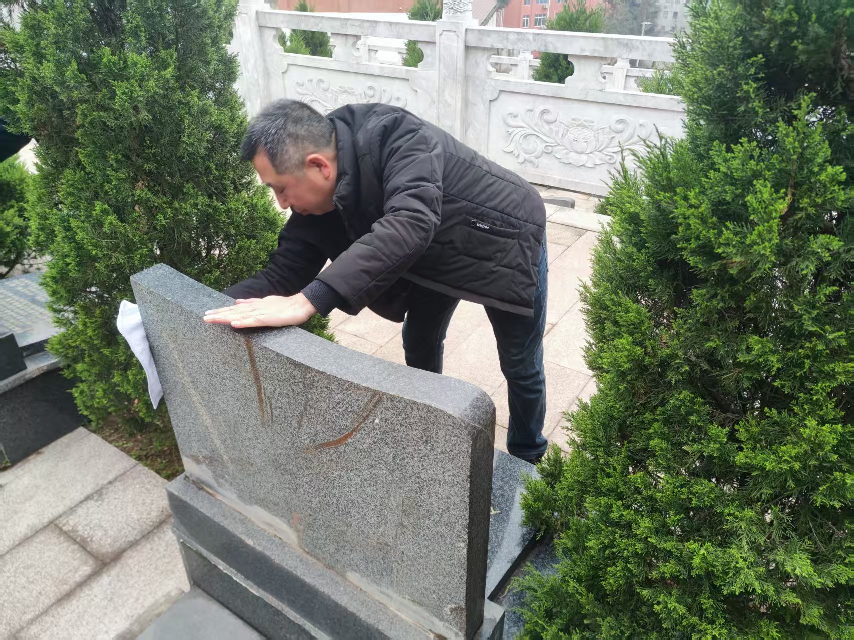 躬身扫墓传薪火,红色基因永赓续。仪式结束后,全体人员分组开展清明扫墓活动。大家俯身擦拭烈士墓碑上的尘土,仔细清理陵园内的枯枝落叶,并为每座烈士墓献上鲜花。