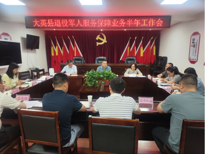 2022年7月22日,县退役军人事务局组织召开了大英县退役军人服务保障业务半年总结工作会。会议传达学习了习近平总书记来川视察重要指示精神、省第十二次党代会精神,听取了各镇(街道)上半年的工作情况并安排部署了下半年服务保障工作。县退役军人事务局党组书记、局长徐其柱出席会议并讲话。