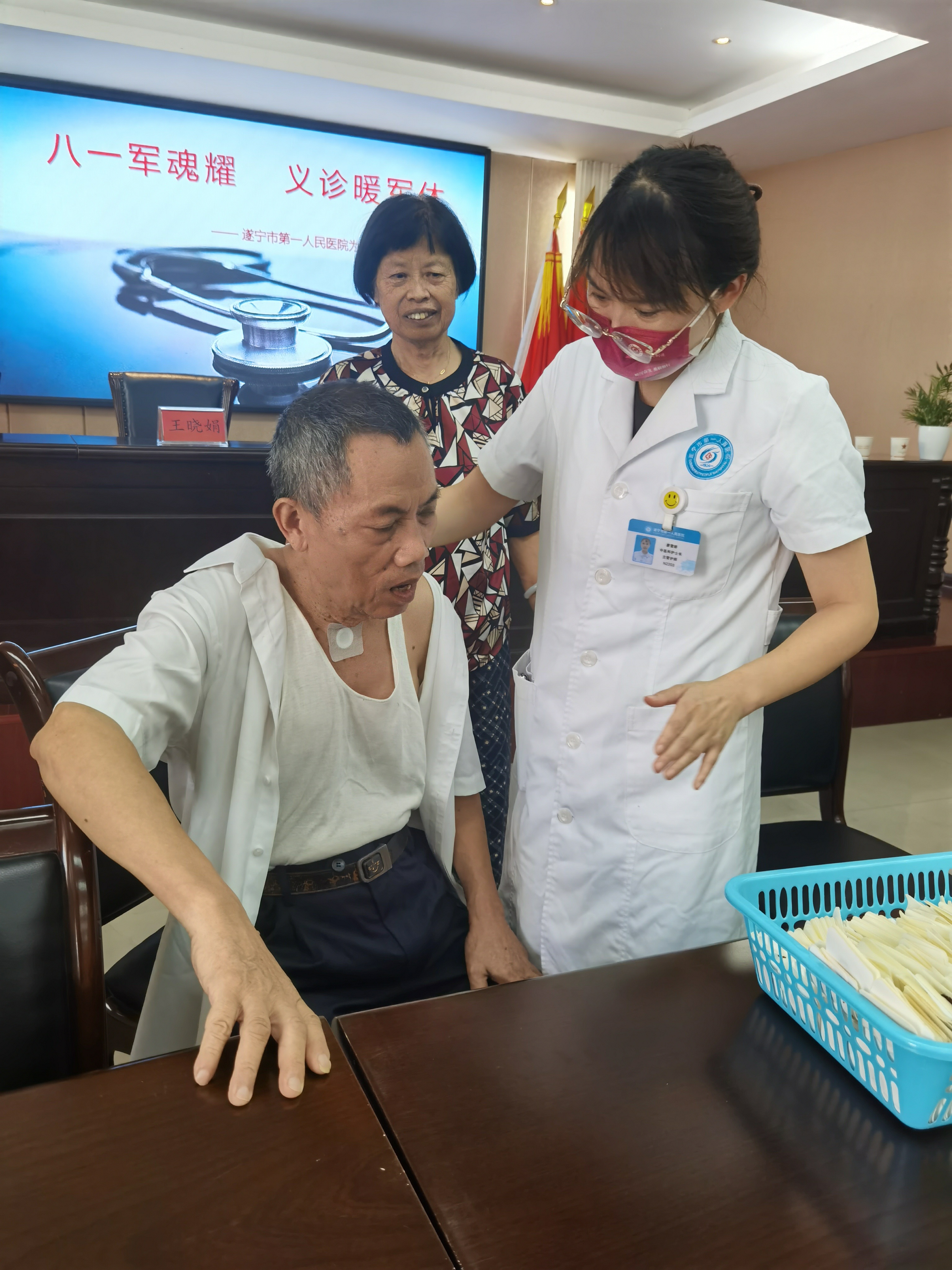 7月31日,遂宁市军休所联合遂宁市第一人民医院开展了“八一军魂耀,义诊暖军休”义诊活动。活动现场,医护人员为军休干部们提供了血压测量、三伏贴、耳穴贴压等多项基础医疗服务,并现场教学气血操、拍八虚、八段锦等日常保健操,并为他们量身定制健康养生建议。此次义诊活动让军休干部们在家门口就能享受到专业的医疗服务,进一步增强了他们的健康意识和幸福感。