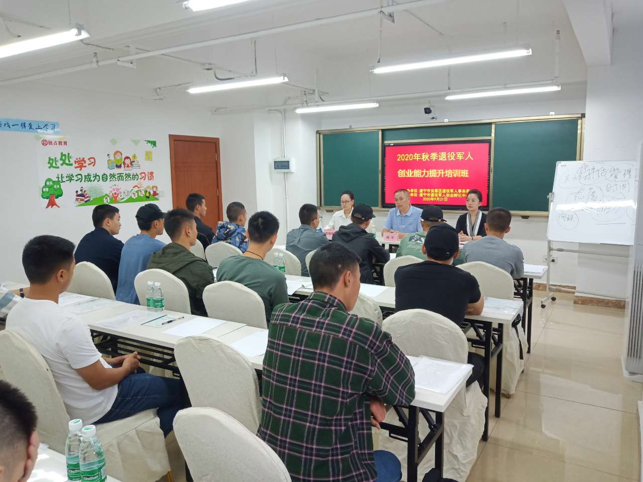 一是"集中欢迎仪式"。9月17日,我区召开了2020年秋季退役士兵光荣返乡集中欢迎仪式。副区长张玲代表区委区政府向光荣返乡的退役军人表示了热烈的欢迎,并作了重要讲话。区委组织部、区公安分局、区医保局等部门就党组织关系转移、户籍管理、医保关系转接等退役军人关心的问题作了现场解答说明。二是"集中就业推荐"。组织2020年秋季退役士兵到四川江淮汽车有限公司、四川力扬工业有限公司等企业参观,企业相关负责人向退役军人们详细介绍了企业生产经营状况,集中推荐了30余个面向退役军人招聘的优质岗位,退役军人对就业岗位进行了全面了解,现场达成就业意向22人。三是“集中创业培训”。在为退役军人搭建好就业平台拓宽退役军人就业渠道的基础上,针对部分退役军人的创业需求,区退役军人事务局积极谋划,集中为他们开展了一次为期两天的创业培训,通过邀请创业导师授课,传授创业技巧、提出项目建议、解读优惠政策、分享成功案例来全面提升退役军人的创业能力,帮助退役军人在创业道路上规避风险、少走弯路。(安居区退役军人事务局 袁 薇)