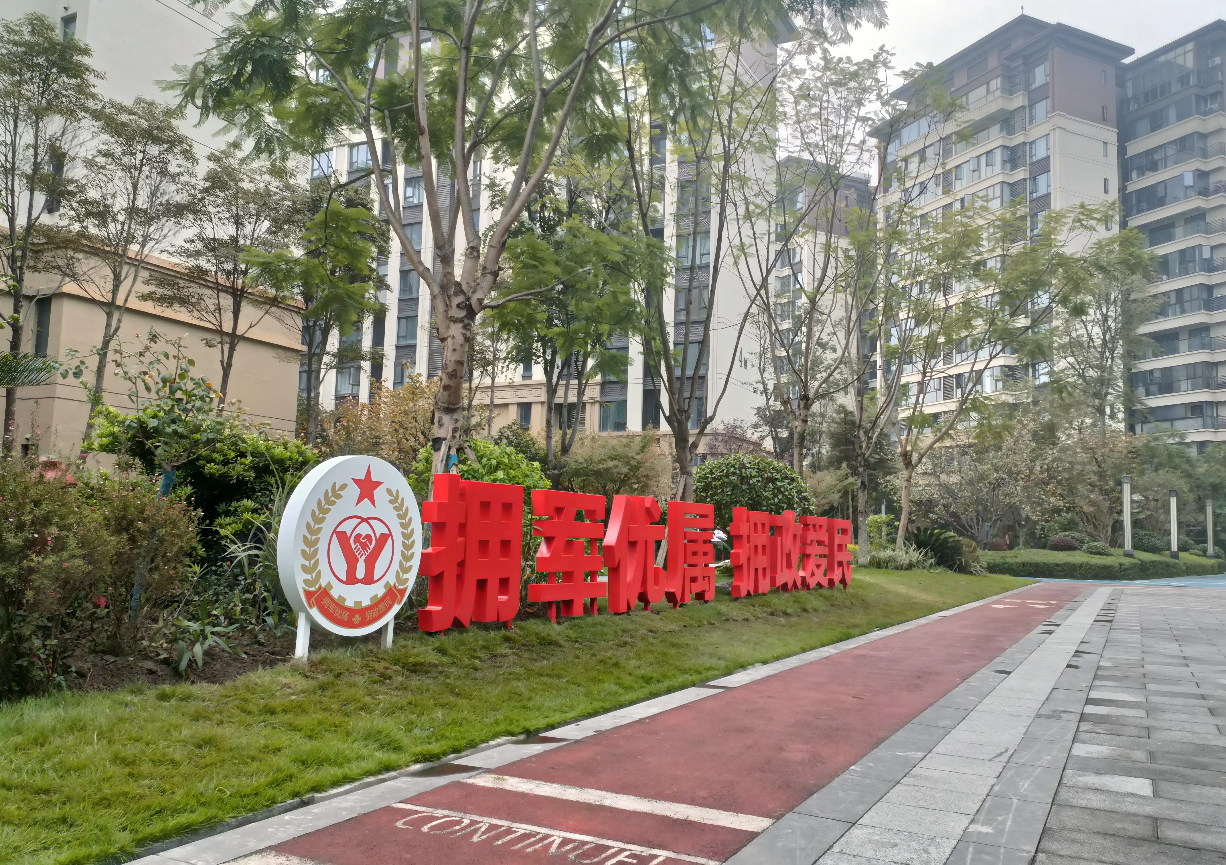 为大力弘扬拥军优属、拥政爱民光荣传统,巩固深化遂宁市蝉联全国双拥模范城成果,扎实推进双拥文化阵地建设。近日,市河东新区退役军人服务中心带领杨渡街道退役军人服务站,科学谋划、精心设计,在河东新区金科集美嘉悦1期成功落地建成杨渡街道首个“双拥示范小区”,将双拥工作延伸至居民家门口,构筑起军民同心、鱼水深情的崭新精神家园。