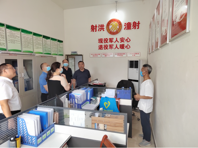 胡勇组长实地查看了射洪市退役军人服务中心、复兴镇退役军人服务站、潼射镇退役军人服务站、金华镇退役军人服务站、大英县河边镇退役军人服务站,每到一个站点,胡勇组长都详细了解“五有”落实情况,仔细翻阅各类工作台账,认真听取关于服务站工作开展的情况汇报。胡勇组长指出,基层退役军人服务中心(站)是服务好广大退役军人及其他优抚对象的前沿阵地,“五有”是支撑服务中心(站)建设的“架子”,务必以“齐”的要素和“久”的持续强力保障到位;浓厚的氛围是退役军人服务中心(站)区别于其他系统服务阵地的“面子”,务必要突出鲜明的“军”的特色和温馨的“家”的气息营造到位;切实的作用发挥是“里子”,务必以“实”的工作措施和“优”的服务质量体现到位。