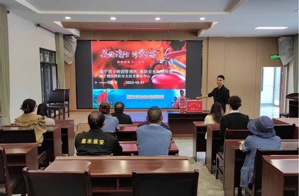 2023年10月31日,遂宁市烈士纪念设施保护中心开展消防安全知识培训,进一步为干部职工普及消防安全知识、强化消防安全意识。