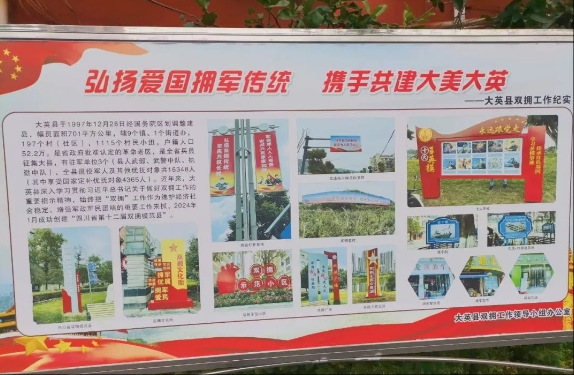 多重拥军解忧政策,激发建功军营动力活力。他们以用活用足政策为突破口,切实把政策优势,转化为激励军人安心服役的能力优势、强军优势,并积极主动解决服役军人的后顾之忧,让他们安心服役。军人的尊崇地位,在大英县得到充分体现。从2022年起,本着“财政再紧不能紧最可爱的人”,县里就对参军入伍人员实行奖励政策,鼓励适龄青年参军报国。高等院校毕业生及在校生入伍一次性奖励数额,居全省前列。为解决退役军人和军人家属就业,各级各部门先后制定近十项退役军人安置和就业扶持政策,对有创业意愿的退役军人,由政府专门提供创业培训、经营场地、金融税收等支持。全县各级各部门、社会各界还在旅游、住宿、就医和出行等方面,出台了惠军政策。每年八一和春节,县主要领导及退役军人事务部门人员,都一个不漏地对现役及退役军人进行慰问,多年如一日从未间断,并对困难军属及时救助。全县1.6万余名退役及优抚对象,无一例因诉求得不到解决而上访。大英县先后两次被评为四川省“双拥模范县”。