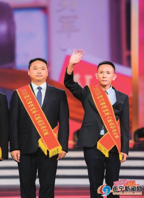 秦勇军(右)荣获“2020四川省退役军人就业创业之星”。