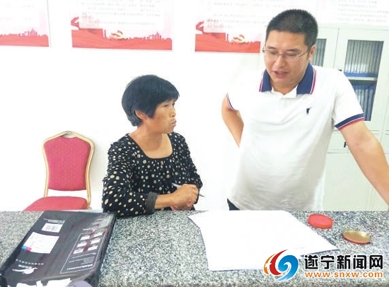 徐浩(右)热心为群众解答问题。