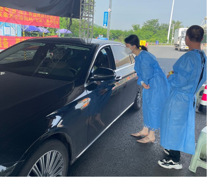 工作人员到遂宁西高速出入口参与疫情防控志愿服务