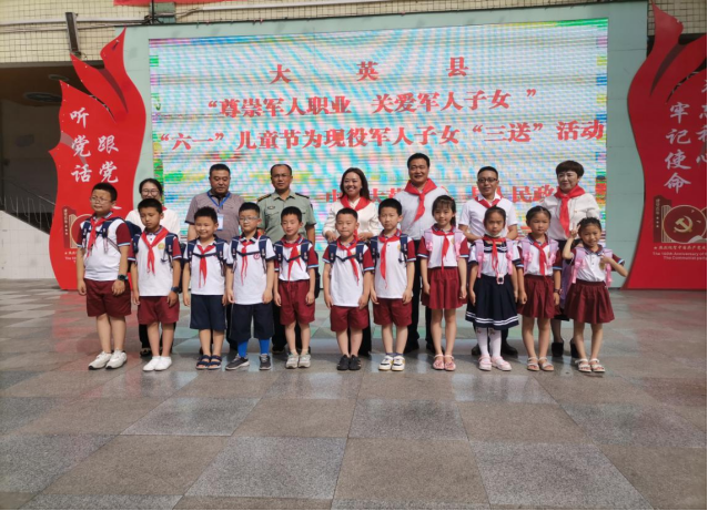 5月31日,在“六一”儿童节即将到来之际,大英县委副书记、县长唐紫薇,副县长陈立国带领县人武部、县教体局、县退役军人局等相关部门来到蓬莱小学,为现役军人子女献爱心、送温暖。
