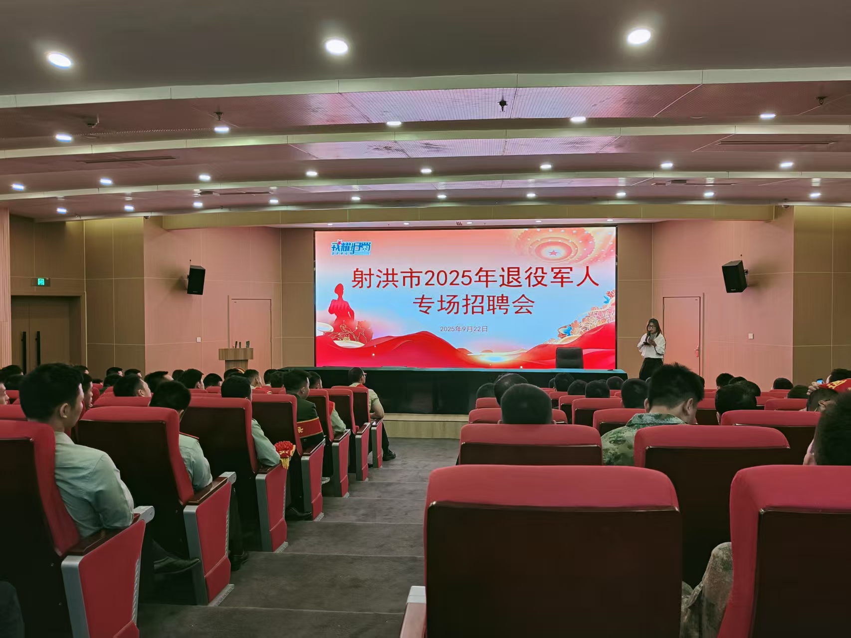 为切实做好退役军人返乡服务保障工作,助力退役军人快速实现角色转变、顺利融入地方发展,搭建就业创业对接平台,9月22日,射洪市2025年秋季退役军人光荣返乡集中欢迎仪式暨适应性培训开班仪式在锂电科技学院图书馆报告厅举行。市委常委、副市长周昊,市退役军人事务局党组书记、局长李琪等领导出席,110名自主择业退役军人、10家企业代表及市退役军人事务局、锂电科技学院相关工作人员参会,现场氛围庄重热烈,退役军人反响积极。
