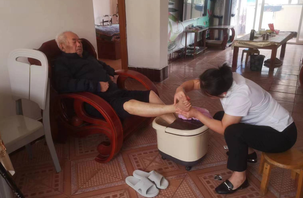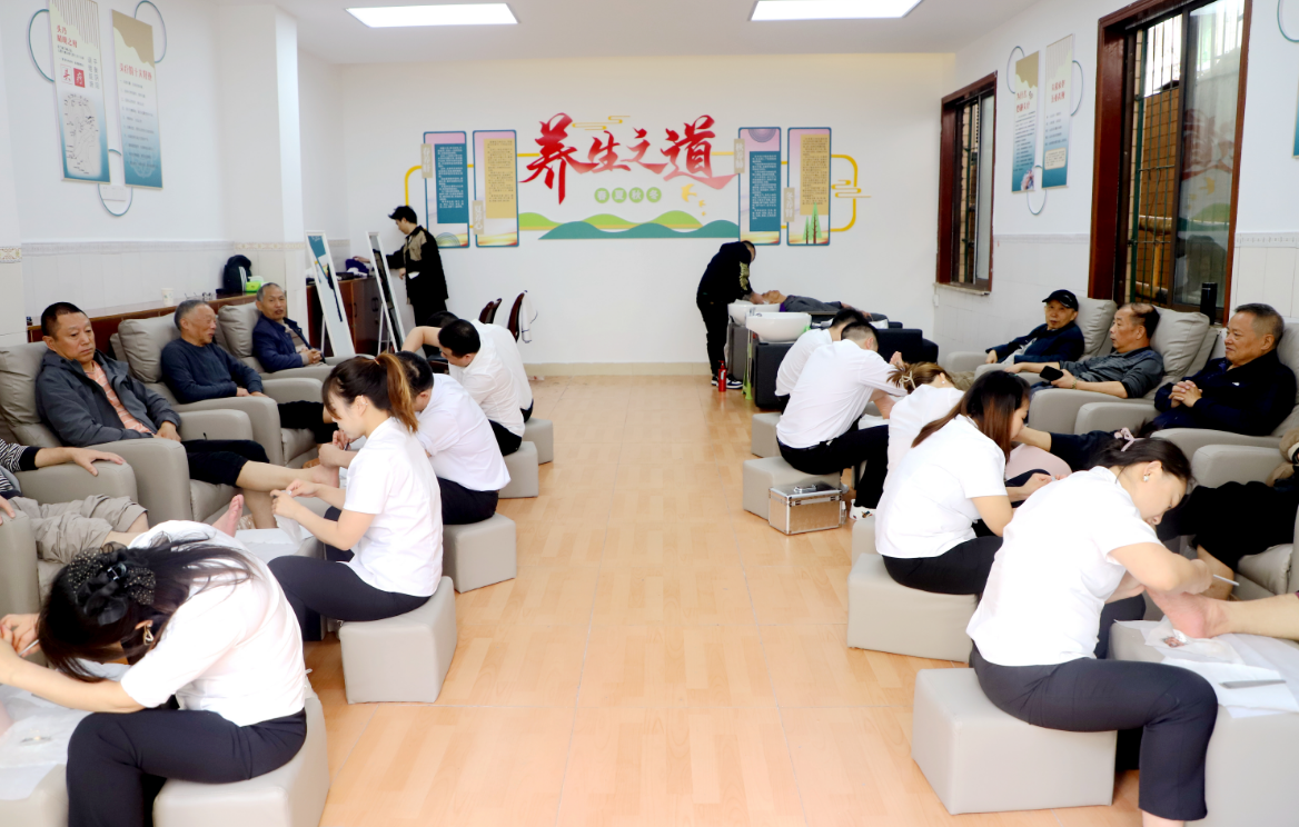 近日,在遂宁市军休所一楼活动室内,20余名军休干部脱掉鞋子,惬意地躺在沙发上,将浴巾盖在腿部,把脚伸进工作人员提前准备好的足浴盆内,听着足浴保健知识讲解,实打实享受了一番足浴带来的舒适体验,并为工作人员的服务点赞。
