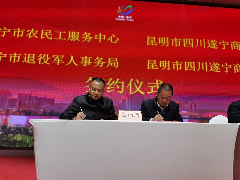 成立仪式上,市退役军人局党组书记、局长唐思伦宣读了成立遂宁市驻昆明退役军人之家的文件,党组成员、市退役军人服务中心主任舒天忠与昆明市遂宁商会签订了委托管理协议,副市长张智勇,市政协副主席、市工商联主席曹驰宇为遂宁市驻昆明退役军人之家等组织授牌。