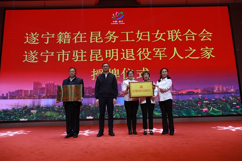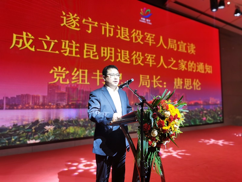1212日,遂宁市驻昆明退役军人之家等组织成立仪式在云南省昆明市举行。副市长张智勇,市政协副主席、市工商联主席曹驰宇出席,市退役军人局党组书记、局长唐思伦,党组成员、市退役军人服务中心主任舒天忠等领导参加成立仪式。