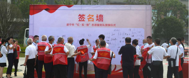 为深入贯彻落实习近平总书记关于志愿服务重要指示、党中央关于新时代文明实践志愿服务工作有关要求和全国退役军人志愿服务工作部署会精神,推动全市退役军人及退役军人工作者志愿服务健康发展,6月10日上午,遂宁市“红·军·情”志愿服务队授旗仪式在市民中心隆重举行。
