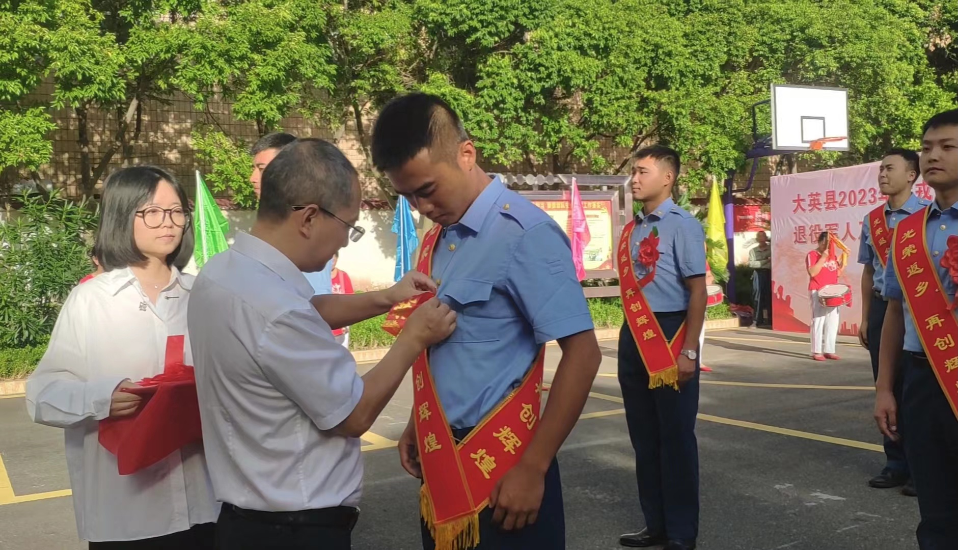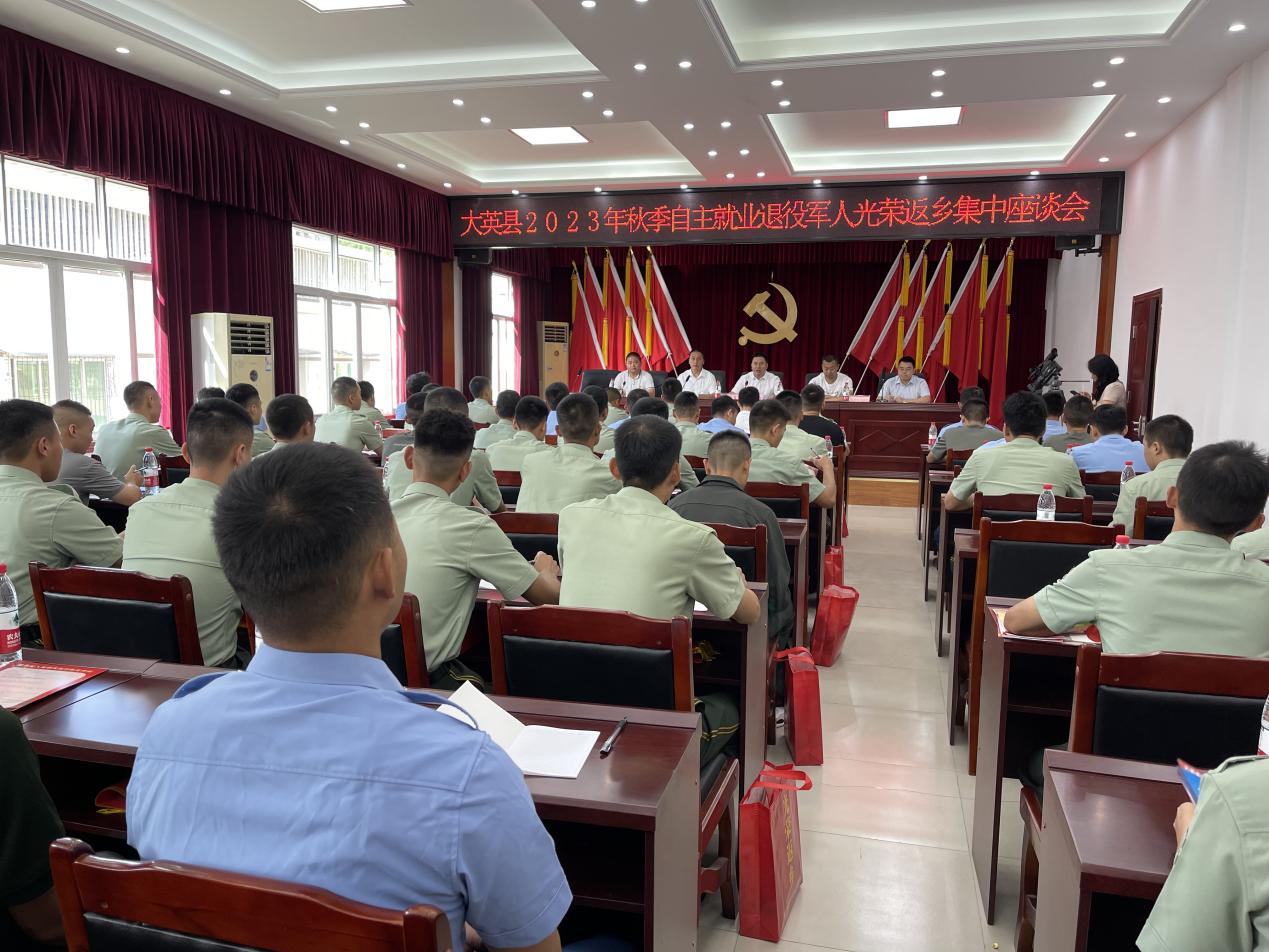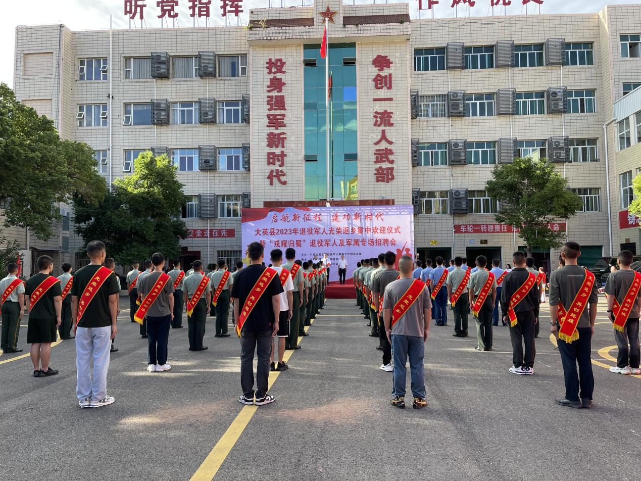 为弘扬拥军崇军传统,营造全社会关心关爱退役军人的浓厚氛围,近日,大英县举行了2023年退役军人光荣返乡集中欢迎仪式暨“戎耀归蜀”退役军人及军属专场招聘活动,副县长黄海波出席仪式并致辞。县退役军人局局长罗俊、县人社局副局长王彦鸿、各镇(街道)退役军人服务站站长、2023年秋季退役军人参加仪式。