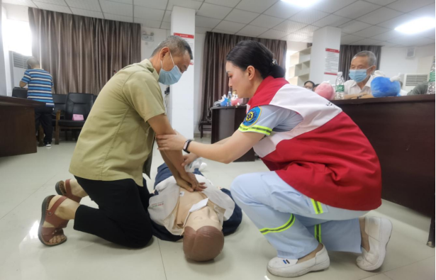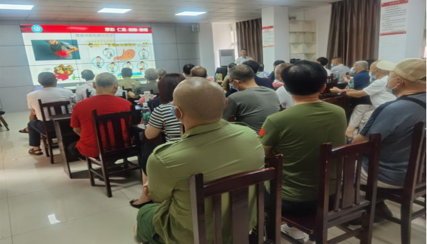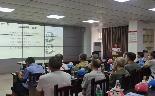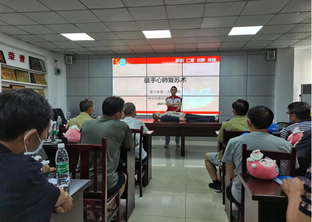 遂宁市第一人民医院团委书记彭晨向退役军人介绍了医院的发展历史以及美好愿景,开展了消化道知识讲座,团委委员、呼吸内科李枝详细讲解了新冠肺炎防护知识,“问心”急救宣讲团、急诊科肖捷组织了急救技能“手把手”培训。随后,志愿者还向40余名退役军人赠送精美纪念品,开展免费健康咨询、血糖血压检查等工作。