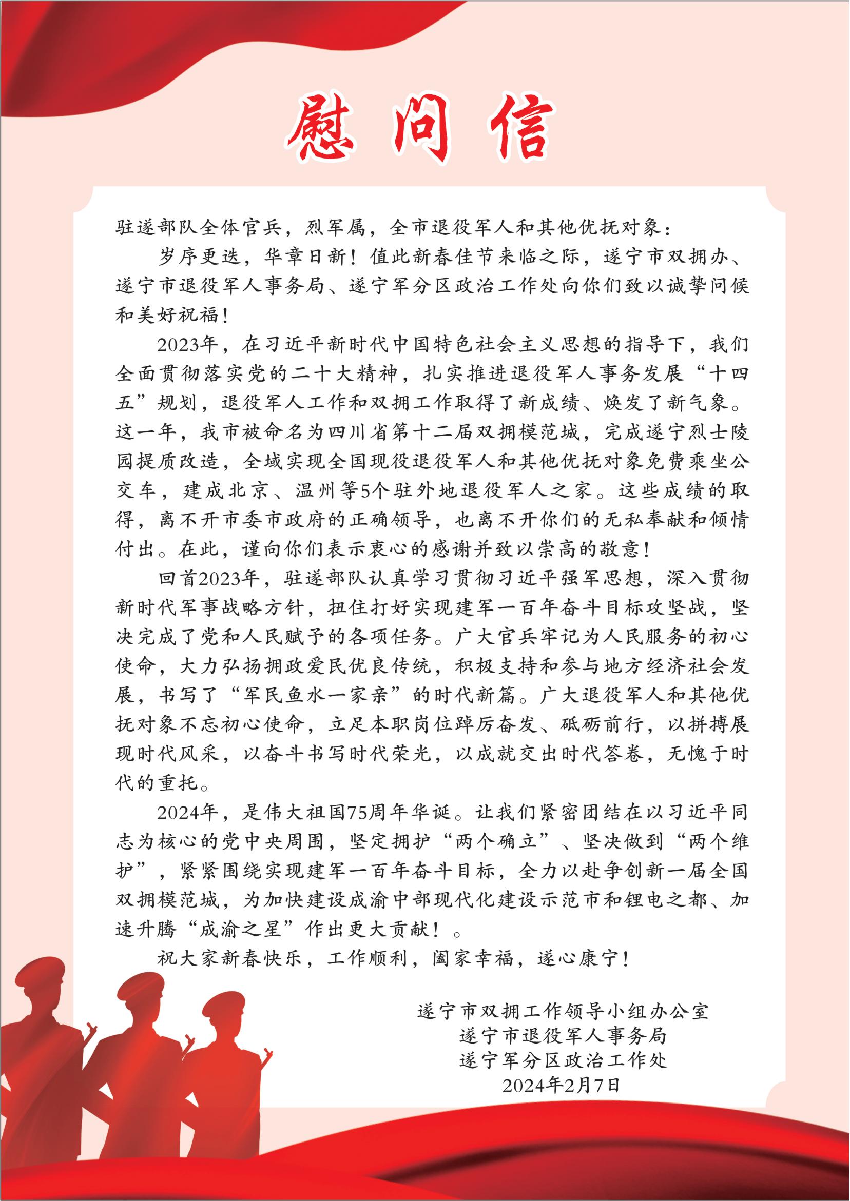 致驻遂部队全体官兵,烈军属,全市退役军人和其他优抚对象的慰问信