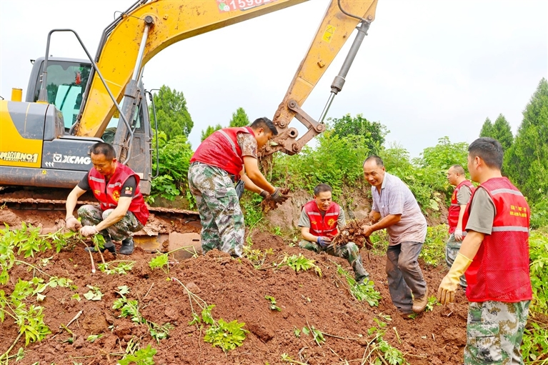 退役军人应急救援志愿服务队帮村民采挖白芷。