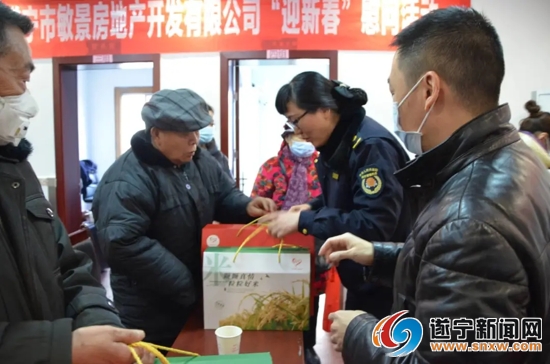 1月27日,市城管执法局联合遂宁市敏景房地产有限公司开展“迎新春、送温暖”慰问活动,为市城区滨江社区的30余户贫困家庭送去了米、面等生活必需品和慰问金,并向他们致以诚挚的节日问候。