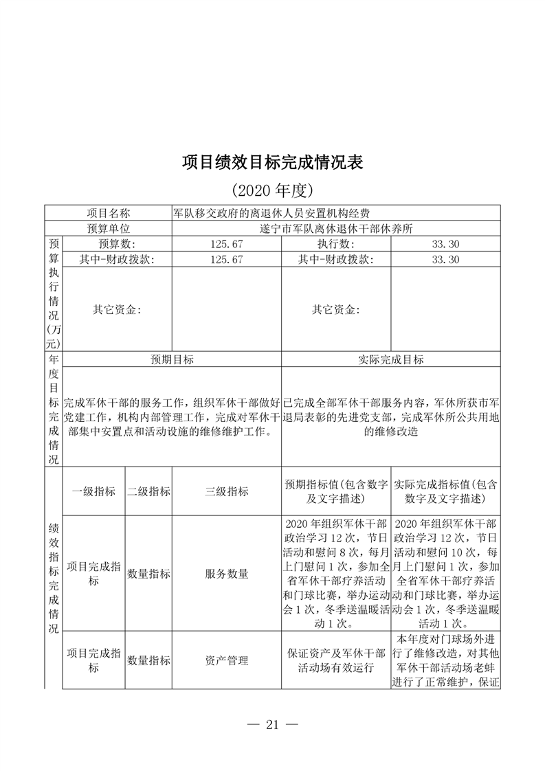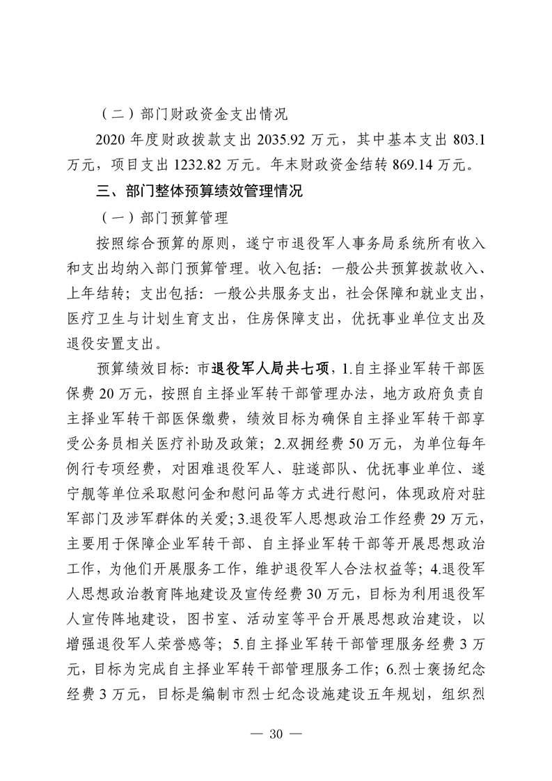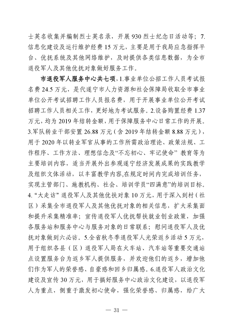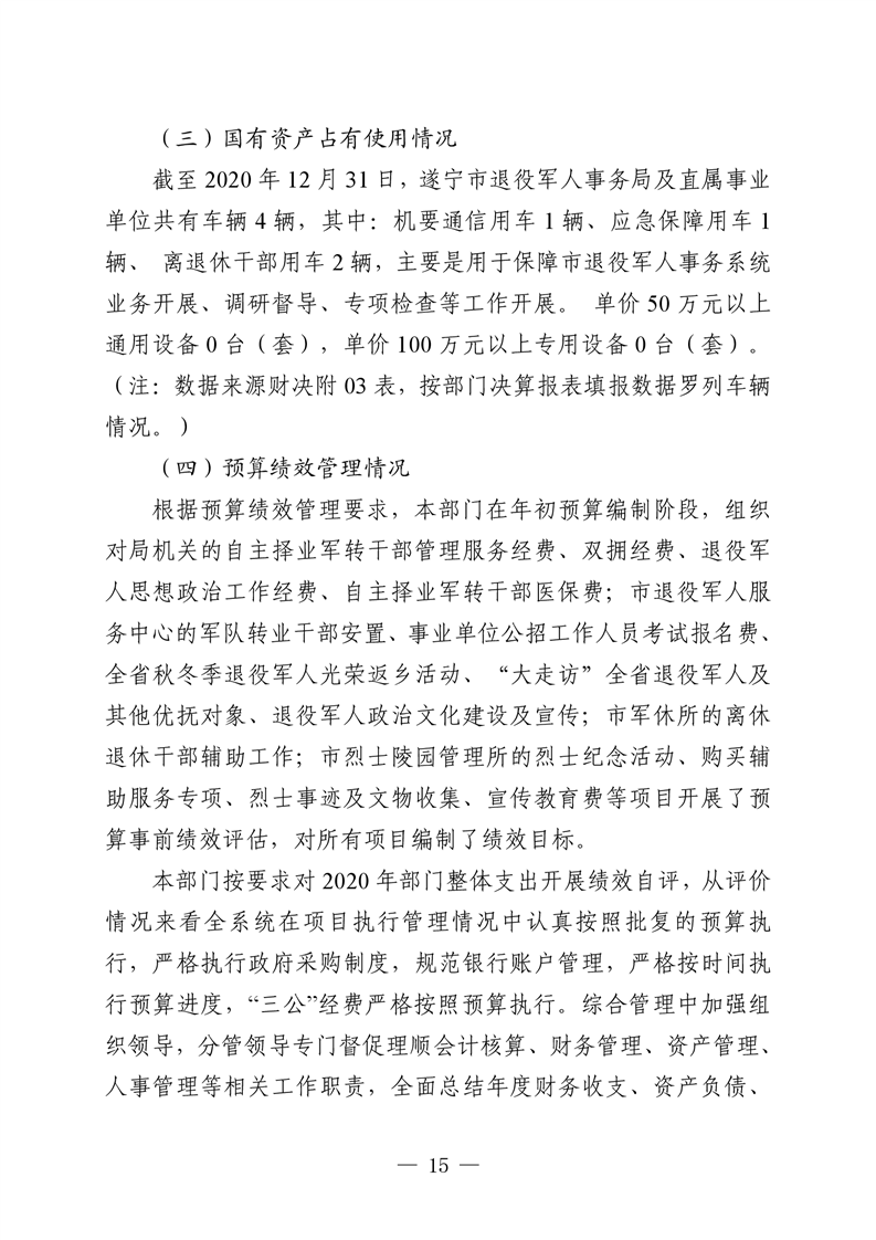 2020年度四川省遂宁市退役军人事务局汇总部门决算