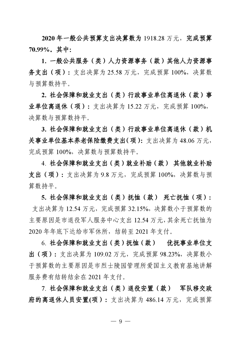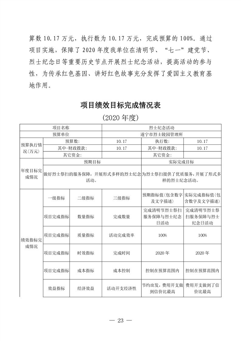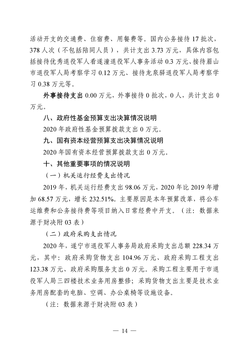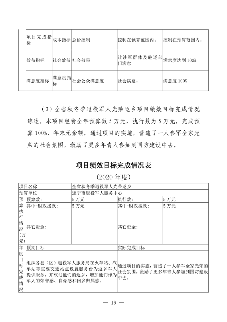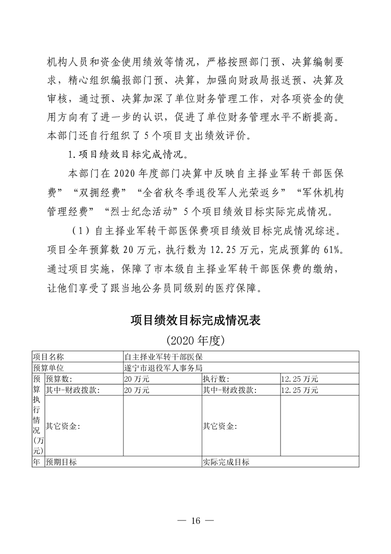 2020年度四川省遂宁市退役军人事务局汇总部门决算