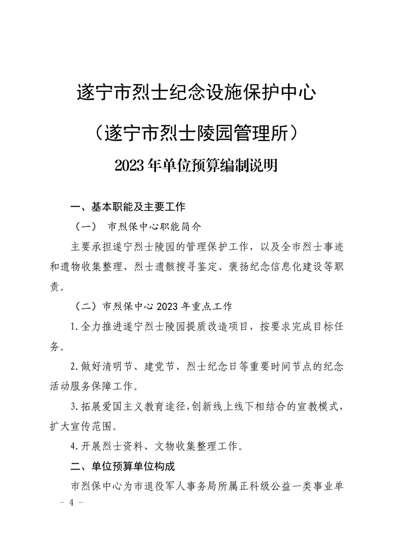 遂宁市烈士纪念设施保护中心 (遂宁市烈士陵园管理所)2023年单位预算