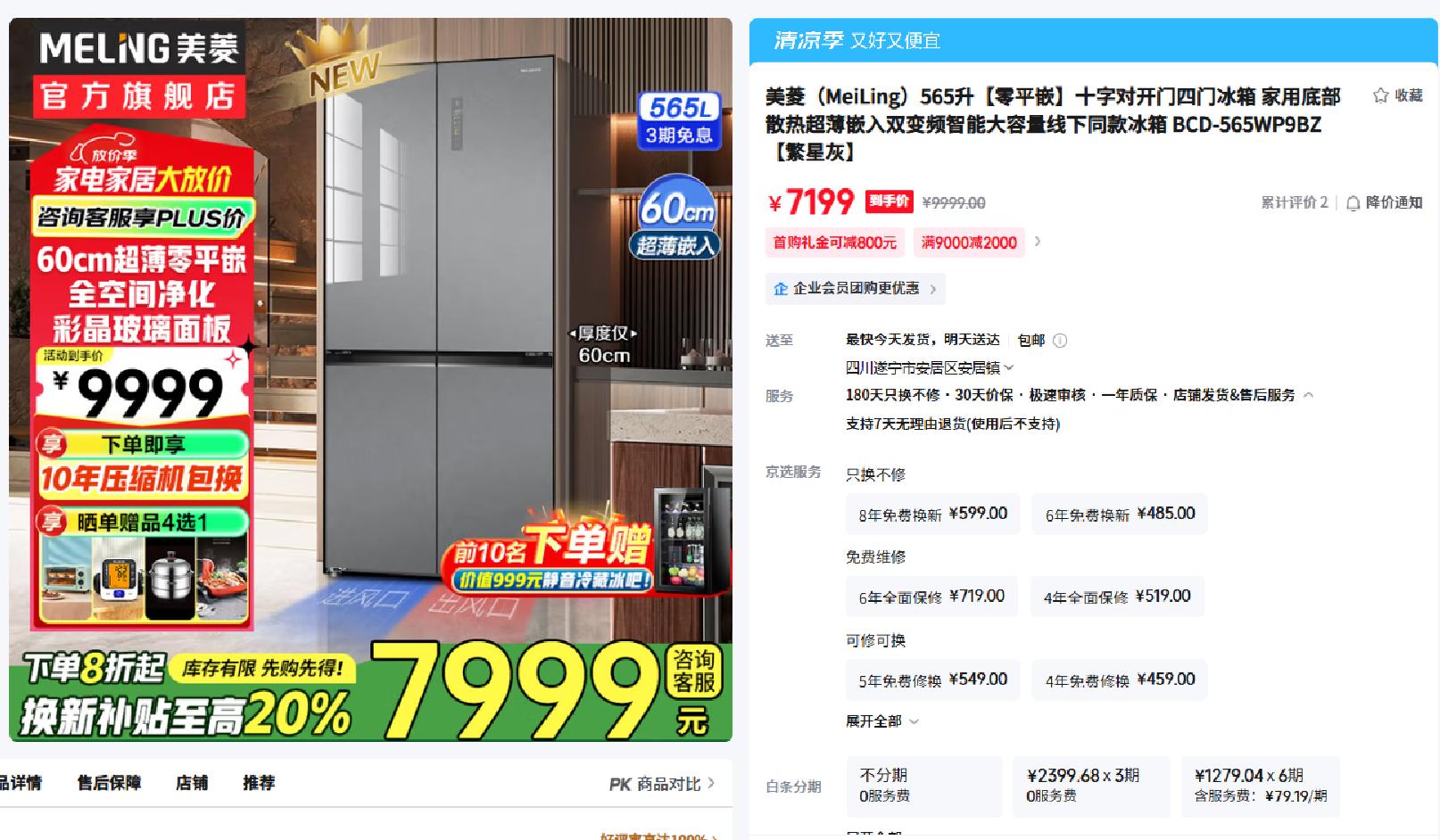 优惠项目 | 美菱冰箱BCD-565WP9BZ | 情景设置 | 线上价格截图 |