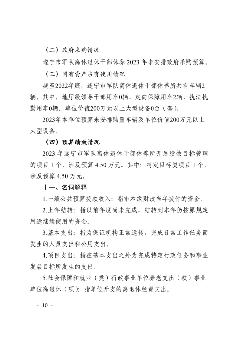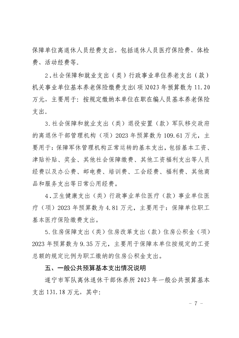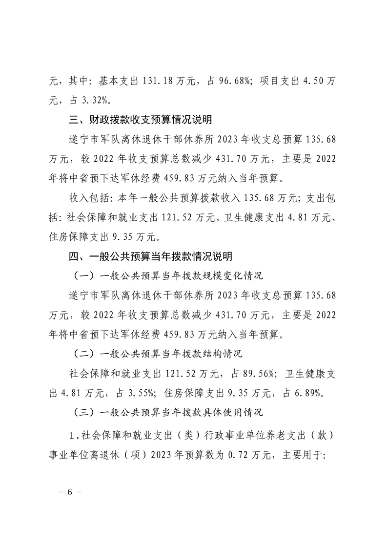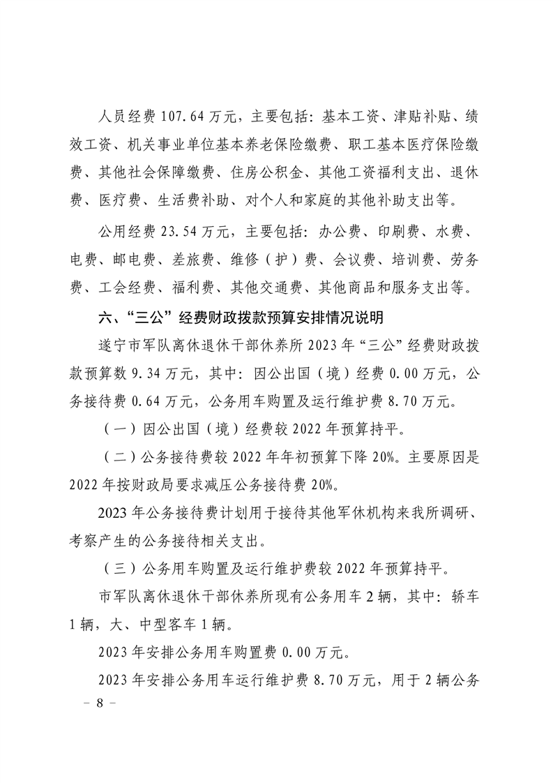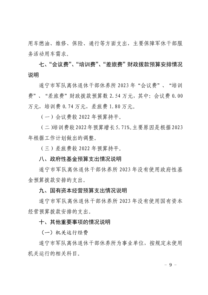 遂宁市军队离休退休干部休养所2023年单位预算