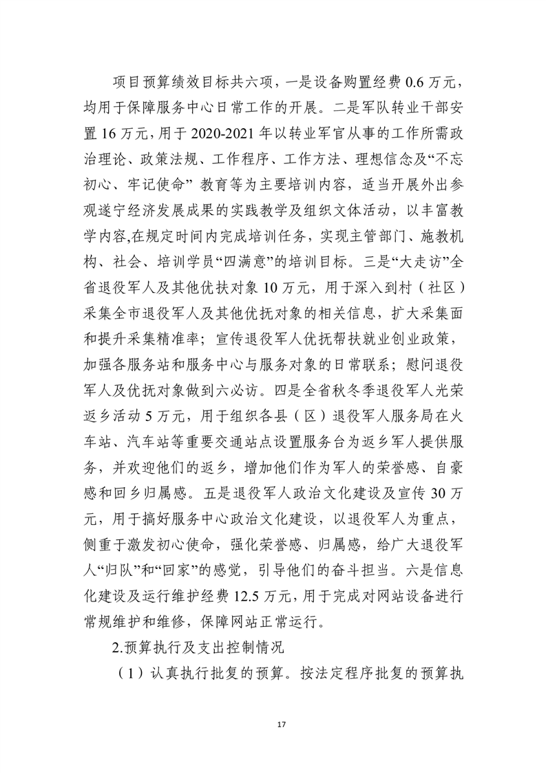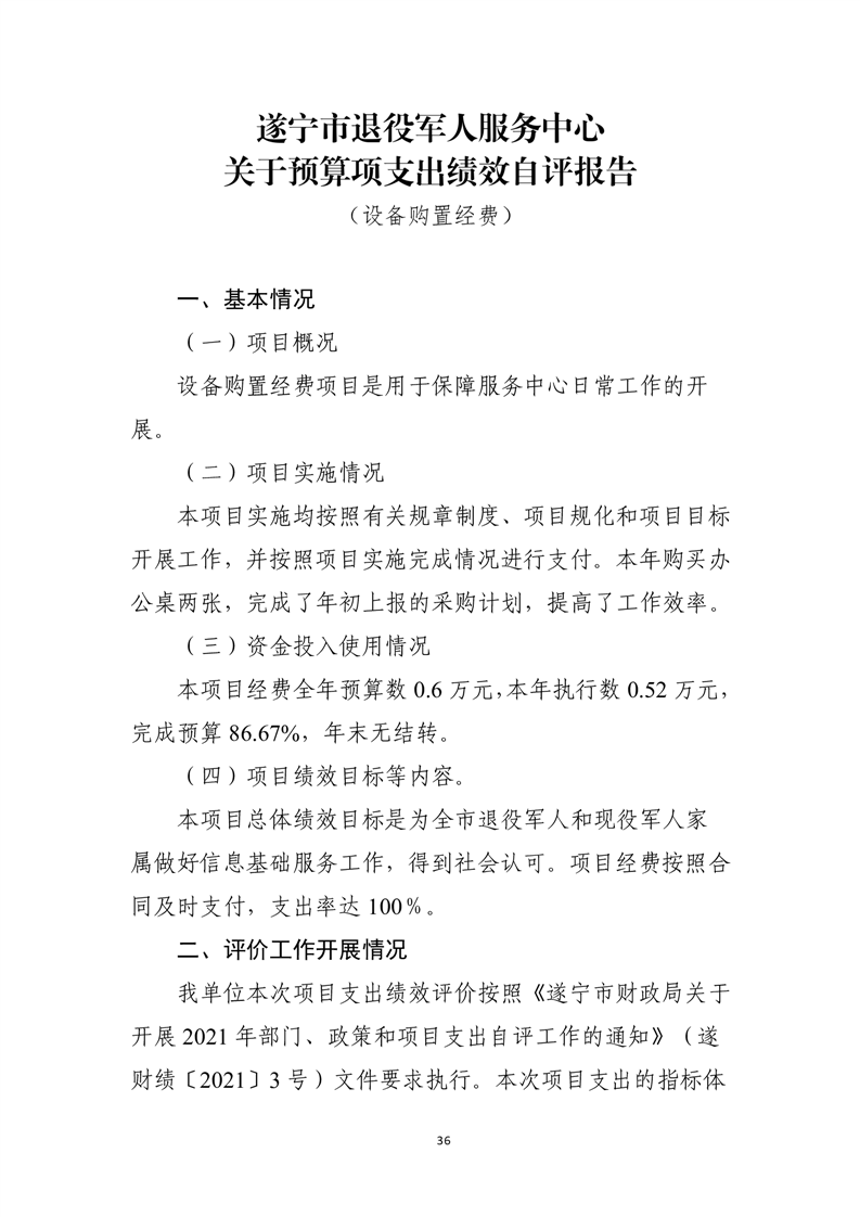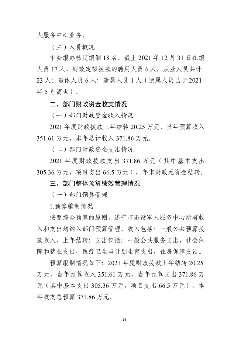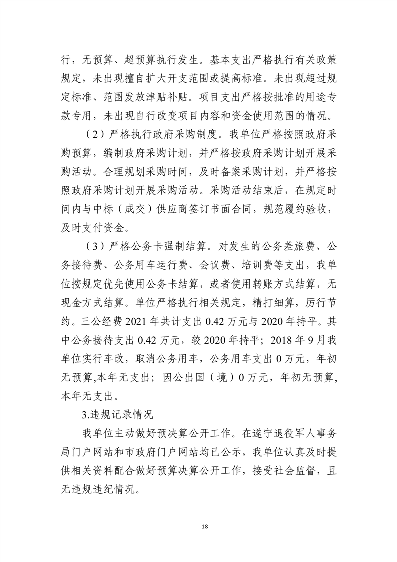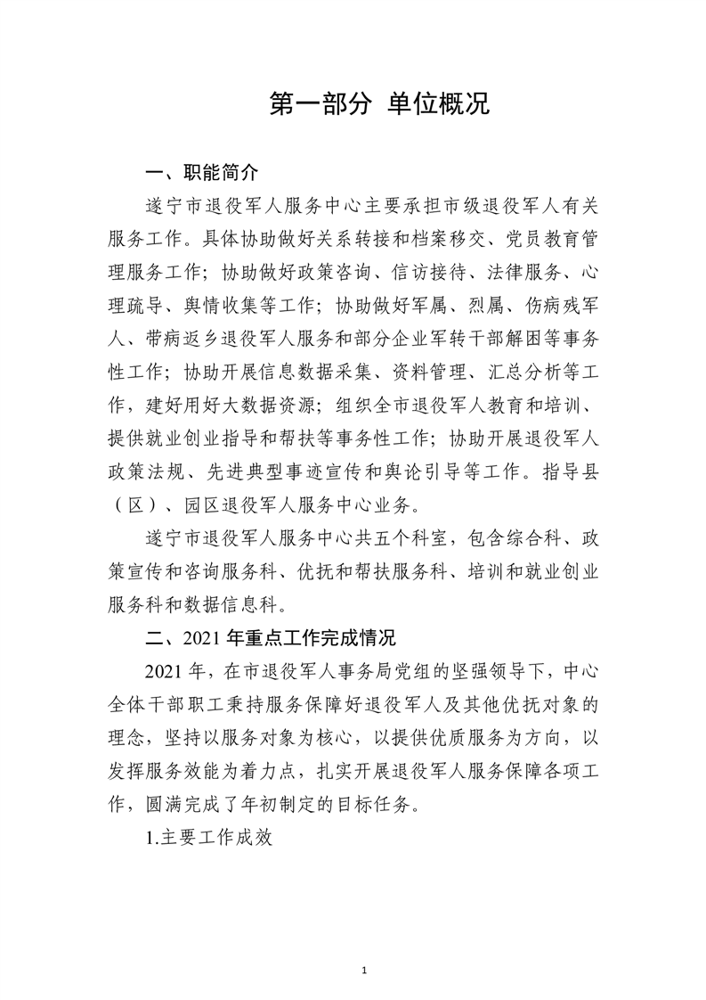 2021年度四川省遂宁市退役军人服务中心单位决算