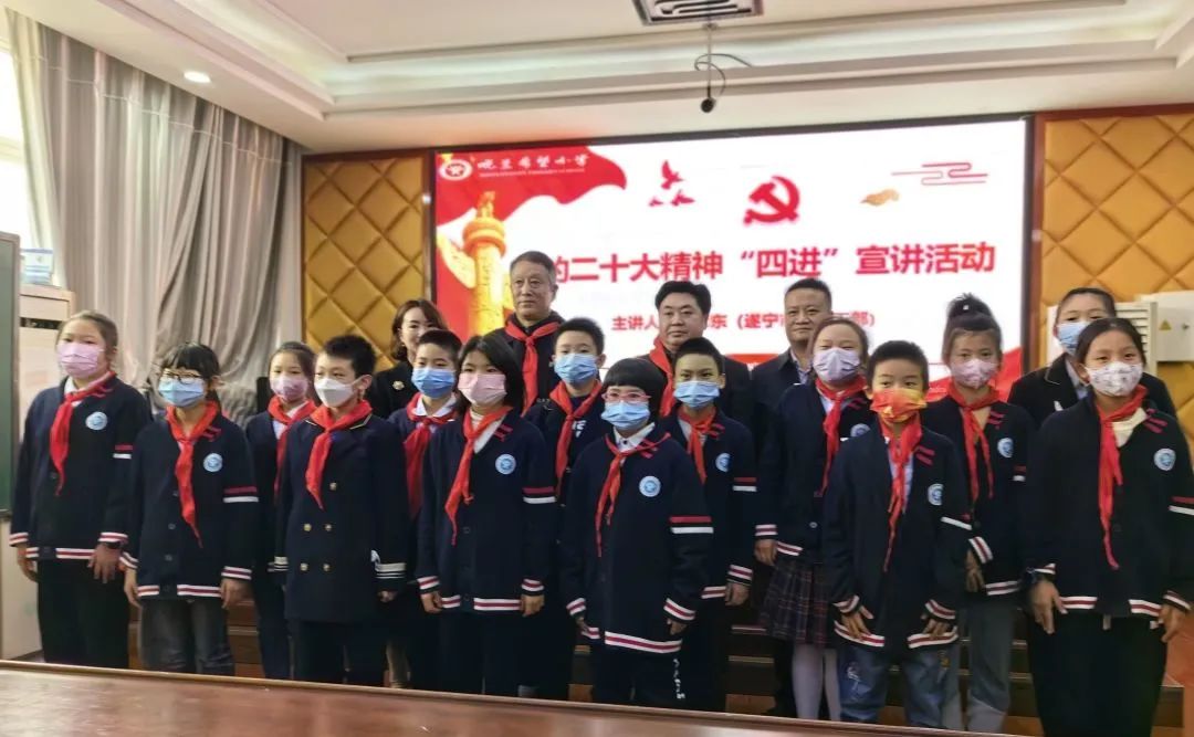 近日,市军休所积极发挥军休干部的政治优势、经验优势、威望优势、专业优势,紧紧围绕党的二十大精神主题,组织红色宣讲团成员、军休干部万永东康浩忠走进晓兰希望小学,开展“讲述革命故事 传承红色基因”宣讲活动。