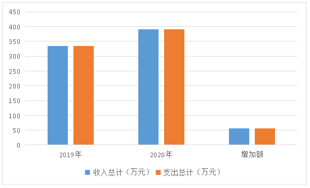 2020年度收入总计390.25万元(包含上年结转10.22万元)。与2019年相比,收入总计增加56.31万元,增长率16.86%,主要原因是业务量增加,人员增加导致基本支出增加。