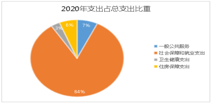 2020年一般公共预算财政拨款支出357.7万元,主要用于以下方面:一般公共服务支出25.58万元,占7.15%;社会保障和就业支出299.27万元,占83.67%;卫生健康支出10.9万元,占3.04%;住房保障支出21.95万元,占6.14%;
